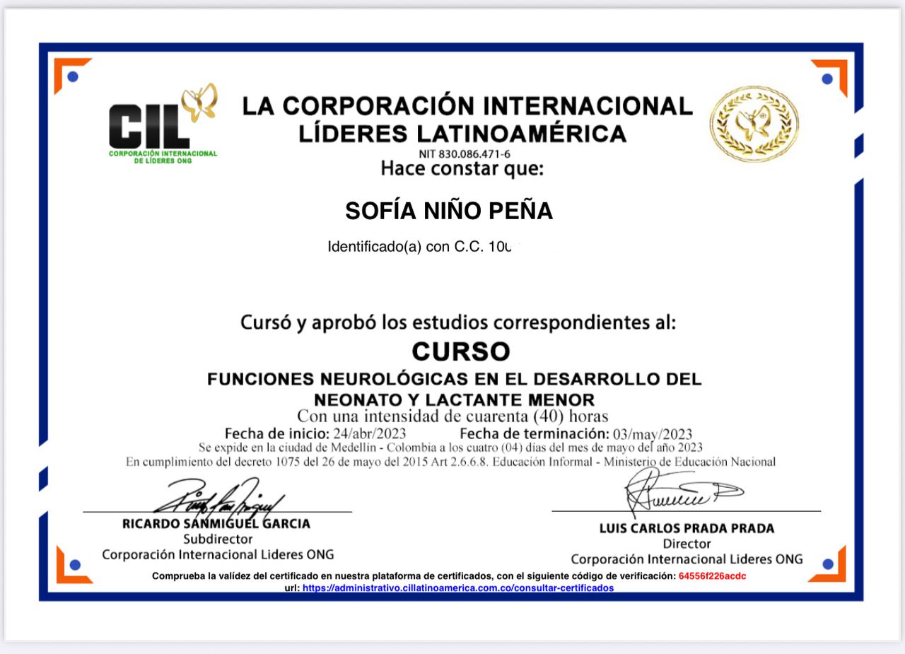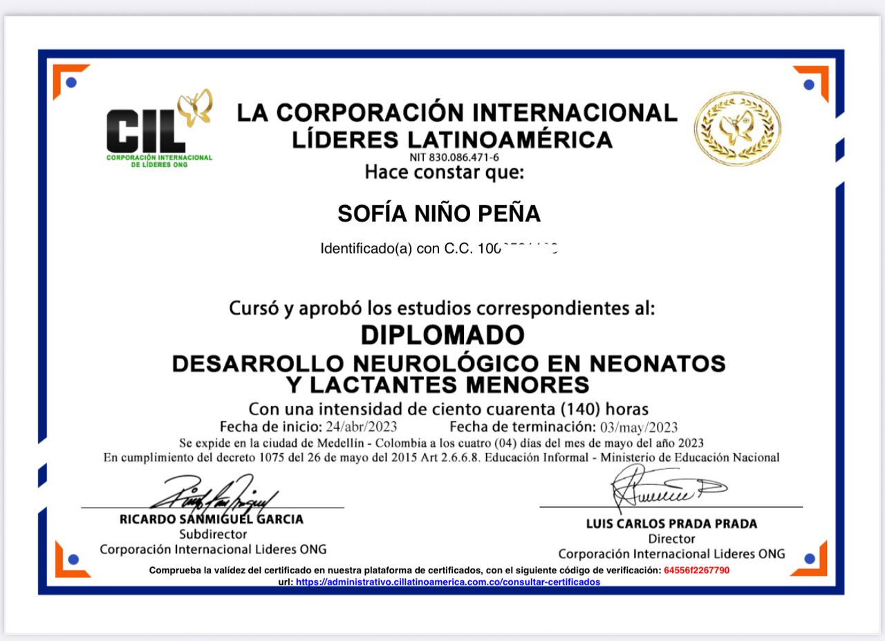 - Diplomado Funciones neurológicas en el desarrollo del neonato y lactante menor (2023)