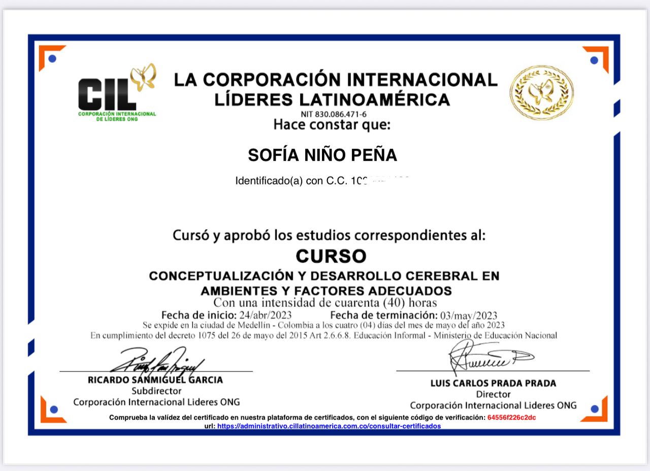 - Curso Conceptualización y desarrollo cerebral en ambientes y factores adecuados. (2023)