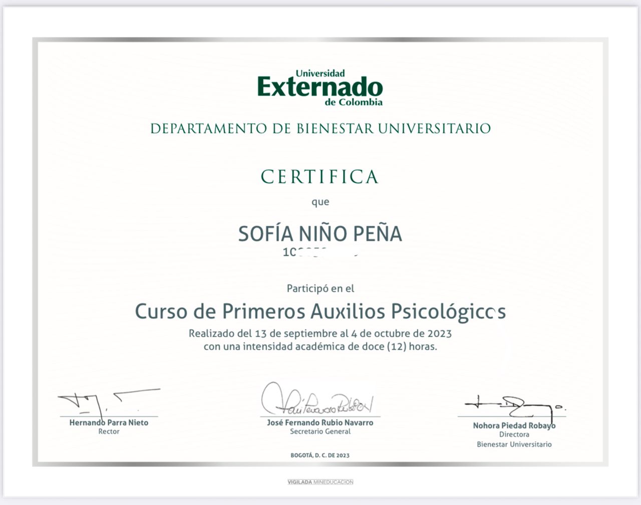 Recomiendo a Sofía Niño Peña como psicóloga sin pensarlo dos veces. Desde el primer momento, te hace sentir en confianza y crea un espacio donde es fácil hablar de lo que necesitas. Es muy cercana y tiene una forma de escuchar que te hace sentir comprendido. Además, sabe guiarte con mucha claridad y siempre ofrece buenas herramientas para trabajar en lo que necesitas. Si estás buscando alguien que de verdad se preocupe por tu proceso, Sofía es una excelente opción.